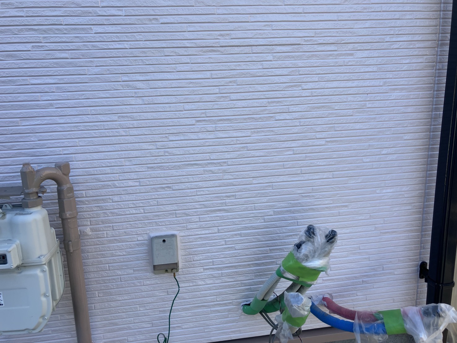 給湯器裏の塗装できていなかった外壁をサービスで塗装させていただきます。